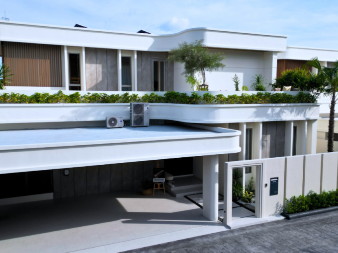 Each villa in Perla Villa Pattaya features four bedrooms and five bathrooms, with spacious interiors ranging from 413 to 418 sqm. Set on land plots between 394 and 462 sqm, these homes offer ample outdoor space ideal for family gatherings, entertaining guests, or quiet relaxation. The villas are equipped with private swimming pools, BBQ areas, and shaded terraces, creating a seamless indoor-outdoor living experience.